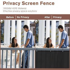 SUNNY GUARD balcony privacy screen can effectively protect your privacy, it is very suitable for balconies, gardens, terraces, swimming pools. Can block more than 90% of ultraviolet rays, which protects privacy and looks beautiful. Specifications: -Material: 100% High density polyethylene (180GSM) -UV Block Rate: Up to 90% PLEASE NOTE: Our digital images are as accurate as possible. However, different monitors may cause colors to vary slightly. It is hard to be avoided. - ?Proteção UV e privacidade? Feito de material 100% novo de polietileno de alta densidade (HDPE), rejeitando o uso de materiais reciclados para melhor saúde e segurança. Uma estrutura organizacional mais científica oferece 95% de proteção UV e 90% de obstrução de visibilidade, permitindo a passagem de ventos suaves e luz. É um bom ajudante para proteger sua privacidade. - ?Parâmetros do produto? A tela de privacidade da varanda adota um processo de produção de costura dupla dobrável, bainha de 3 cm, alta resistência e forte capacidade antioxidante. A casa de botão é feita de alumínio de aviação, que é à prova de ferrugem, resistente e durável. A distância entre a casa de botão é de 59,9 cm. No entanto, deve-se notar que, devido às características deste novo material, o erro de comprimento do produto acabado pode ser de ± 10 cm e o erro de altura pode ser de ± 1,2 cm. - ?Tamanho personalizável? A SUNNY GUARD oferece telas de privacidade de varanda de tamanho personalizado para atender às suas necessidades de espaço. Podemos fornecer mais opções de cores e tamanhos de acordo com suas necessidades para ajudá-lo a decorar seu espaço de privacidade. Feito nos Estados Unidos. Para entender melhor suas necessidades, sinta-se à vontade para entrar em contato conosco a qualquer momento! - ?Medição e instalação? Para oferecer a você a melhor experiência de usuário, incluímos zíperes rápidos e instruções de uso na embalagem do produto. Nenhuma outra ferramenta é necessária. Evite puxar com força durante a instalação e tenha cuidado para ficar longe de chamas abertas ao usar. Meça sua área útil antes de comprar para evitar qualquer inconveniente. - ?Solução versátil? A tela de privacidade da varanda oferece uma ótima solução de privacidade. Adequado para apartamentos e terraços de quintal, varandas, piscinas, grades de varanda e qualquer lugar que exija cercas de privacidade. Bloqueie a invasão de poeira e folhas caídas para evitar que animais de estimação caiam acidentalmente.