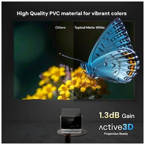 O material em PVC multicamadas com dorso escuro contribui para bloquear a luz proveniente da parte traseira, reforçando o nível de preto e a fidelidade das cores, além de ser compatível com conteúdo em 3D. O ângulo de visão em torno de 170° permite que a imagem permaneça clara e brilhante mesmo para espectadores posicionados lateralmente, atendendo confortavelmente grupos maiores.