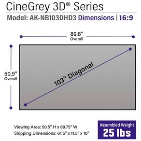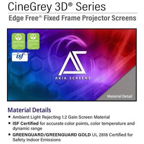 Tela de projeção fixa ALR 103" 16:9 Akia Screens CineGrey 3D cinza borda infinita para projetor longo alcance