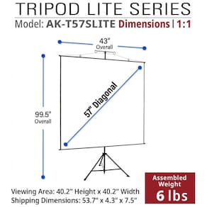 O conjunto Tripod-Lite permite montagem rápida e sem ferramentas, com tripé de três seções, travas de ajuste de altura e barras superior e inferior em alumínio que mantêm a tela esticada. A tela é destacável para uso em parede e o material MaxWhite 2 possui backing opaco para evitar passagem de luz, é resistente a vincos, certificado ISF e GREENGUARD/GREENGUARD Gold, podendo ser higienizado com água e sabão neutro e sendo compatível com projetores de alcance padrão em resoluções HD, Full HD, 4K, 8K e 3D.