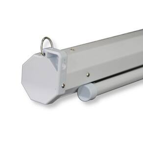 As telas podem ser fixada no teto ou na parede, possuem estojo metálico com acabamento superficial em pintura eletrostática resistente riscos e a corrosão, garantindo maior durabilidade ao produto.