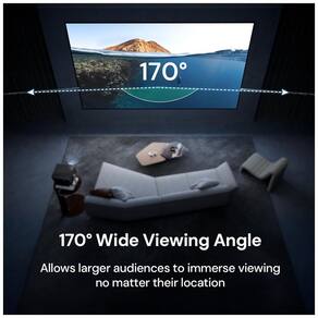 O ângulo de visão de cerca de 170° permite que a imagem permaneça visível e legível para espectadores posicionados em diferentes pontos da sala, incluindo assentos laterais. A estrutura em moldura de alumínio foi projetada para instalação fixa em parede, garantindo rigidez, estabilidade e acabamento discreto para uso contínuo.