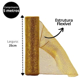 Tela Decorativa Fita Malha Tule Dourado Natal 25cm x 5m