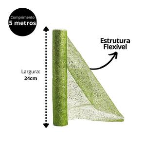 -01 Unidade Tela Decorativa Fita Natal Malha Verde Lantejoulas Brilho Luxo 24cm x 5 metros Magizi