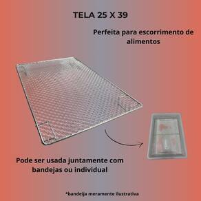 Tela para escorredor de frituras - 29,6cm x 43,5cm x 7,5cm Tela de alta qualidade e resistência, ideal para o escorrimento de alimentos fritos como pastéis, batatas, salgados e muito mais. Fabricada com estrutura aramada em aço estanhado, proporciona durabilidade e eficiência no uso diário. Muito utilizada por profissionais autônomos, lanchonetes, restaurantes e food trucks, é uma ferramenta prática e indispensável para manter seus alimentos mais sequinhos e crocantes. Também pode ser Utilizado para secagem e resfriamento de alimentos, garantindo versatilidade na sua cozinha. Material: aço estanhado de alta resistência Modelo: grelha escorredora tipo grade Uso: escorrimento, secagem e resfriamento de frituras e outros alimentos Estrutura firme e durável Largura: 25 cm Comprimento: 39 cm Altura: 2 cm Diâmetro da trama: 0,6 cm :: prazo de envio Após a confirmação do pagamento em . :: atendimento Caso tenha dúvidas, utilize os canais de atendimento. Possuímos uma equipe altamente qualificada para respondê-los a Rapidamente. :: pós-venda Não tenha dúvidas nós vendemos bem para vendermos sempre conte Com nosso Atendimento em horário comercial sempre que precisar. :: dicas de compra 1. Leia todo o anúncio antes de comprar. 2. Verifique se seus dados de contato estão atualizados no momento Da compra. 3. Confira o seu endereço de recebimento, pois não temos como Alterá-lo. :: Este produto possui de 3 meses contra defeitos de Fabricação a partir do Recebimento. Para acionar a será necessário enviar o Produto de volta junto com Suas embalagens recebidas, por isso é de suma importância guardar e Conservar as embalagens.