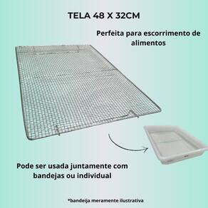 Tela para escorredor de frituras - 37,3cm x 53,2cm x 8,6cm Tela de alta qualidade e resistência, ideal para o escorrimento de alimentos fritos como pastéis, batatas, salgados e muito mais. Fabricada com estrutura aramada em aço estanhado, proporciona durabilidade e eficiência no uso diário. Muito utilizada por profissionais autônomos, lanchonetes, restaurantes e food trucks, é uma ferramenta prática e indispensável para manter seus alimentos mais sequinhos e crocantes. Também pode ser Utilizado para secagem e resfriamento de alimentos, garantindo versatilidade na sua cozinha. Material: aço estanhado de alta resistência Modelo: grelha escorredora tipo grade Uso: escorrimento, secagem e resfriamento de frituras e outros alimentos Estrutura firme e durável Largura: 32 cm Comprimento: 48 cm Altura: 2 cm Diâmetro da trama: 0,6 cm :: prazo de envio Após a confirmação do pagamento em . :: atendimento Caso tenha dúvidas, utilize os canais de atendimento. Possuímos uma equipe altamente qualificada para respondê-los a Rapidamente. :: pós-venda Não tenha dúvidas nós vendemos bem para vendermos sempre conte Com nosso Atendimento em horário comercial sempre que precisar. :: dicas de compra 1. Leia todo o anúncio antes de comprar. 2. Verifique se seus dados de contato estão atualizados no momento Da compra. 3. Confira o seu endereço de recebimento, pois não temos como Alterá-lo. :: Este produto possui de 3 meses contra defeitos de Fabricação a partir do Recebimento. Para acionar a será necessário enviar o Produto de volta junto com Suas embalagens recebidas, por isso é de suma importância guardar e Conservar as embalagens. Marca: Não Informado Ean: 7804721757129