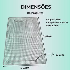 Tela para escorredor de frituras - 37,3cm x 53,2cm x 8,6cm Tela de alta qualidade e resistência, ideal para o escorrimento de alimentos fritos como pastéis, batatas, salgados e muito mais. Fabricada com estrutura aramada em aço estanhado, proporciona durabilidade e eficiência no uso diário. Muito utilizada por profissionais autônomos, lanchonetes, restaurantes e food trucks, é uma ferramenta prática e indispensável para manter seus alimentos mais sequinhos e crocantes. Também pode ser Utilizado para secagem e resfriamento de alimentos, garantindo versatilidade na sua cozinha. Material: aço estanhado de alta resistência Modelo: grelha escorredora tipo grade Uso: escorrimento, secagem e resfriamento de frituras e outros alimentos Estrutura firme e durável Largura: 32 cm Comprimento: 48 cm Altura: 2 cm Diâmetro da trama: 0,6 cm :: prazo de envio Após a confirmação do pagamento em . :: atendimento Caso tenha dúvidas, utilize os canais de atendimento. Possuímos uma equipe altamente qualificada para respondê-los a Rapidamente. :: pós-venda Não tenha dúvidas nós vendemos bem para vendermos sempre conte Com nosso Atendimento em horário comercial sempre que precisar. :: dicas de compra 1. Leia todo o anúncio antes de comprar. 2. Verifique se seus dados de contato estão atualizados no momento Da compra. 3. Confira o seu endereço de recebimento, pois não temos como Alterá-lo. :: Este produto possui de 3 meses contra defeitos de Fabricação a partir do Recebimento. Para acionar a será necessário enviar o Produto de volta junto com Suas embalagens recebidas, por isso é de suma importância guardar e Conservar as embalagens. Marca: Não Informado Ean: 7804721756818