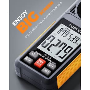 O anemômetro TopTes TS-301 é um anemômetro digital portátil confiável e eficiente com uma tela LCD de 5,7 cm fácil de ler. É ideal para rastreamento do clima doméstico, eficácia do sistema de ventilação, verificação de consistência e condições climáticas antes de atividades ao ar livre, como vela, surf, pesca, golfe, tiro, caminhadas, drones voadores e muito mais. Este medidor de velocidade do vento é projetado com pás de ventilador fáceis de girar; mede a velocidade do vento nas 6 unidades: * Pés por minuto (pés/m) * Pés por segundo (pés/s) * Milhas por hora (mph) * Nós (nós) * Quilômetros por hora (km/h) * Metros por segundo (m/s) * Valor da velocidade do vento x 10. Além disso, adicionamos um sensor de temperatura e umidade de alta precisão ao TS-301, que ajuda a medir a umidade relativa e a temperatura do ambiente atual. - Fácil de ler com tela LCD retroiluminada de 5,7 cm: o anemômetro TopTes possui uma tela LCD grande de 5,7 cm para facilitar a leitura. Este medidor de vento portátil é ideal para atividades ao ar livre como vela, windsurf, drone voando, pipa, passeios de barco, frisbee, golfe, tiro e muito mais. Use-o para determinar as condições climáticas locais e avaliar o impacto potencial da velocidade do vento em suas atividades - Anemômetro com 6 unidades de medição: Este dispositivo de medição de velocidade do vento está equipado com pás de ventilador facilmente rotativas e mede a velocidade do vento em 6 unidades: pés por minuto (pés/m), pés por segundo (pés/s), milhas por hora (mph), nós (nós), quilômetros por hora (km/h), metros por segundo (m/s) Valor da velocidade do vento x10. Use-o para avaliar o fluxo de ar interno em configurações como HVAC, ventilações, coletores de poeira, registros de calor - Umidade do vento e temperatura do vento: o medidor de velocidade do vento TS-301 está equipado com um sensor de temperatura e umidade que permite medir a umidade do vento e as leituras de temperatura. A faixa de medição de umidade relativa é de 0,0% ~ 99,9% UR. A faixa de medição de temperatura é de -4,0F a 140,0F. Observe que pode levar pelo menos 30 minutos para que os sensores de temperatura e umidade se ajustem ao novo ambiente - Leve, fácil de usar: este anemômetro leve e fácil de usar é perfeito para entusiastas de atividades ao ar livre. É fácil de segurar e operar com uma mão, e seu tamanho compacto permite armazenamento conveniente no bolso durante atividades como caminhadas, ciclismo e corrida. Além disso, o medidor de vento TS-301 conserva energia desligando automaticamente após 10 minutos sem uso - O que vem na caixa: um anemômetro digital TS-301, três pilhas AAA, um manual do usuário e uma bolsa de transporte
