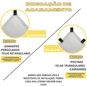 Podem ser utilizadas em módulos de sombreamento em geral, divisões de ambientes ou até mesmo como matéria prima para a confecção de belíssimas peças de uso pessoal ou de decoração. Principais aplicações Quiosques, guarda-sóis, pérgolas, ombrelones, sombreadores de automóveis, toldos, cortinas entre outros. Material Polietileno de alta densidade e com aditivos especiais que proporcionam características importantes às telas: proteção contra raios ultravioleta e a redução da luminosidade solar. Alças aplicadas a cada 1 metro Tecida em material virgem com aditivos anti-uv. Marca: Não Informado Ean: 7897641871709