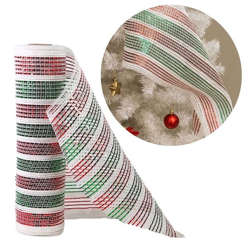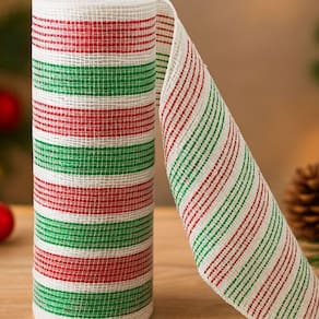 Deixe sua decoração natalina ainda mais encantadora com a tela malha tule candy tricolor, em listras de vermelho, verde e branco. Um modelo clássico e alegre que remete ao estilo "candy", trazendo vida e cor para árvores, guirlandas e arranjos de Natal.