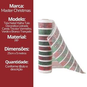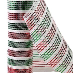 Tela Malha Tule Decorativa Natal Candy Tricolor 25cm x 5m