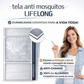 Tela Mosquiteira de Encaixe Regulável Lifelong 50 x 70 cm A Tela Mosquiteira de Encaixe Regulável Lifelong protege sua casa contra mosquitos e insetos com instalação simples e rápida. O produto já é enviado montado, sendo necessário apenas encaixar na janela, sem uso de ferramentas ou necessidade de cortes. Possui 4 travas deslizantes com travamento automático, permitindo ajuste seguro e prático da altura, oferecendo maior durabilidade e firmeza no uso diário. Diferenciais do Produto Instalação rápida e fácil Produto removível para limpeza Perfis em alumínio que não enferrujam Tela em fibra de vidro com revestimento em PVC anti-chamas Alta ventilação com proteção eficiente contra insetos Produto lavável e antialérgico Medidas Largura fixa: 50 cm Altura regulável: de 70 cm até 134 cm Pode ser instalada na posição vertical ou horizontal Espessura do perfil: 8 mm Compatibilidade Indicado para janelas de correr com vão mínimo de 50 x 70 cm Cores disponíveis Alumínio branco com tela branca Alumínio preto com tela preta Alumínio cinza com tela cinza Composição Perfis em alumínio Tela mosquiteira em fibra de vidro revestida em PVC Cantoneiras em nylon Borracha EPDM Informações Importantes Produto disponível apenas nas medidas e cores anunciadas. Não fabricamos sob medida. de fábrica: 1 ano Marca: Não Informado