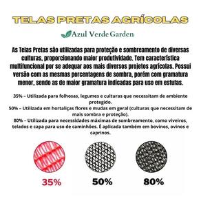 - tela de sombreamento preta 50% agrinet nas dimensões - 3 metros de largura por 5 metros de comprimento, com acabamento de fita reforçada e ilhós aplicado à cada 50cm na bainha + alças reforçadas nas 4 pontas.
