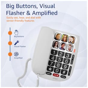 6 teclas de memória de foto de um toque, teclado de botão grande, botões de rediscagem e flash, plástico ABS de última geração e construção de botão Volume alto da campainha e pisca pisca visual, compatível com aparelho auditivo O cabo conector de linha removível para montagem em mesa ou parede funciona mesmo quando há falta de energia. 4 níveis de volume do fone de ouvido amplifica o som de entrada em até 85 decibéis, 3 configurações de volume da campainha campainha alta 75 dB Memória fotográfica mantida mesmo quando o telefone é desconectado. Programe em casa e traga para o seu ente querido sem preocupações telefone analógico, não comparável aos sistemas VoIP Voice over Internet Protocols Marca: Não Informado