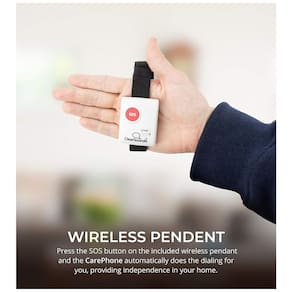 VEM COM UM PENDENTE DE ALARME SOS O pendente sem fio permite que você programe o CSC600ER para enviar uma mensagem pré gravada para 5 ajudantes designados. Ele permite que você atenda qualquer chamada no viva voz.