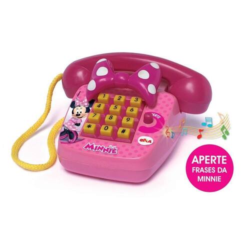 A Minnie é incrivelmente fofa e está pronta para a diversão das crianças com o Telefone com Frases - Foninho Sonoro Minnie - Disney - Elka. Esse lindo telefone sonoro com frases da Minnie vai encantar as crianças. As pequenas podem brincar como fone, apertar as teclas e o botão com frases ratinha favorita Disney. O Foninho Sonoro Minnie vai ajudar as pequenas a desenvolverem a comunicação e linguagem de um jeito divertido. INFORMAÇÕES • Produto: Telefone da Minnie de brinquedo • Marca: Elka • Alimentação: 3 baterias LR 41 • Material: Plástico • Idade recomendada: para crianças a partir de 3 anos de idade. AVISO: • As imagens são meramente ilustrativas. As cores e estampas dos produtos podem ter variações. As informações são de responsabilidade do fabricante ou fornecedor.