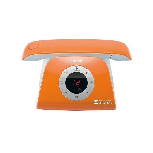 Telefone Digital Sem Fio Vtech Com Secretaria Eletronica Retro Phone Laranja Informações do Produto Inspirado nos telefones clássicos de disco o Vtech Retro Phone, combina tendências Retrô com Tecnologia Contemporânea