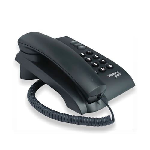 Telefone fixo Intelbras Pleno, design de mesa, funções Flash, Mute e Rediscagem.Identificador de chamadas