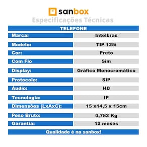 Totalmente Prático e Moderno! O TIP 125i da Intelbras conta com uma excelente qualidade de áudio em HD, livre de interferências ou ruídos, e com ajuste de volume digital. Além disso, com esse telefone você tem mais conforto para falar, pois, possui conector e tecla de atendimento para utilização com Headset RJ9 (Não Incluso!).