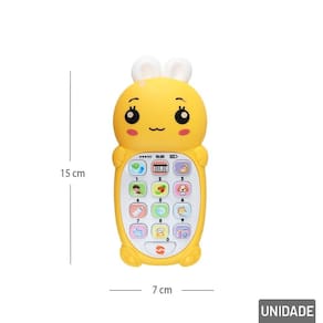 Telefone Musical Infantil com LUZ e SOM Coelh O Telefone Musical é o brinquedo perfeito para introduzir as crianças no mundo da comunicação e da aprendizagem de forma divertida e interativa. Com um design adorável de coelho, este telefone colorido vai capturar a atenção dos pequenos enquanto os estimula a explorar sons, luzes e a linguagem. Feito de plástico durável e seguro, o telefone é projetado para ser fácil de segurar, com botões grandes e coloridos que são ideais para as mãos pequenas.\nAo apertar os botões, o telefone emite sons divertidos, como toques de chamada, além de falas em inglês que ajudam as crianças a aprenderem palavras e frases simples na língua inglesa enquanto brincam. As frases e palavras são claras e amigáveis, tornando o aprendizado agradável e motivador para os pequenos. As interações com o telefone ajudam a desenvolver habilidades cognitivas, como a associação de sons às palavras, a compreensão da linguagem e a memória.\nMarca : SATYAM Tipo de material : Plástico Cores ou Estampa : Color Dimensões do Produto : 15 X 7 X 2 CM Dimensões da Embalagem : 20 X 13 X 2 CM Peso Bruto (Gramas) : 0.009 Disponivel em cores.