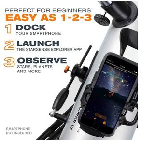 TECNOLOGIA DE RECONHECIMENTO DO CÉU STARSENSE PATENTEADA Este telescópio exclusivo usa a tecnologia patenteada e premiada de reconhecimento do céu StarSense e seu smartphone para analisar os padrões das estrelas e calcular sua posição em tempo real.