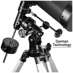 Abertura grande de Telescópio de grande abertura de , alta resolução, boa capacidade de coleta de luz, imagem mais brilhante, mais adequado para a observação do objetivo celestial do espaço profundo. Óptica de alta qualidadeO telescópio adota uma estrutura robusta e leve, a fibra de carbono estava cobrindo a superfície do telescópio, tecnologia sofisticada. A lente objetiva possui óptica de vidro totalmente revestida, pode melhorar o desempenho do sistema óptico de telescópios astronômicos, ajudá lo a observar planetas mais brilhantes e detalhados. Montagem Equatorial AlemãEquatorial Alemão com mostrador e cabos de controle de torneamento fino. Ajuste a haste na posição desejada e prenda facilmente apertando o botão. O posicionamento preciso e o rastreamento rápido de corpos celestes tornam sua observação mais estável. Você pode aproveitar o incrível processo de rastreamento manual da lua e dos planetas. Tripé estávelO telescópio vem com um tripé de liga de alumínio ajustável de grande diâmetro e alta qualidade. Uma bandeja extra é anexada para zenar pequenos acessórios temporários. A estrutura estável do tripé permite que você localize objetos celestes com suavidade e precisão. Múltiplos acessóriosVem com 2 oculares de alta qualidade, uma lente Barlow de ereção de 1,5X, um filtro lunar de transmissão de 1,25 e 13, um adaptador de celular Marca: Não Informado