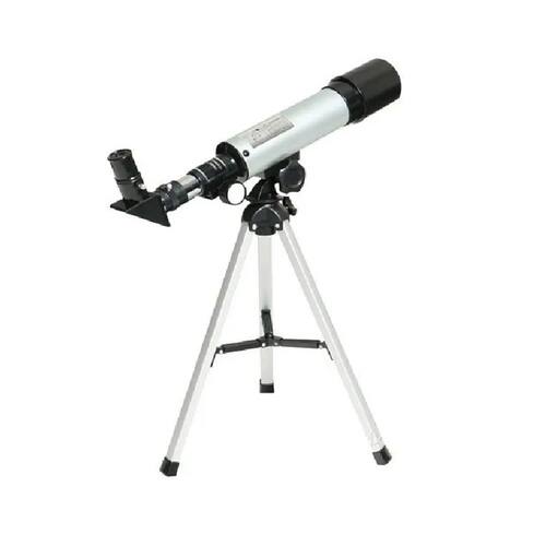 Descrição: Características: Estrutura: Monocular Cor do tubo principal: prata Comprimento refrativo/focal: 360 mm Abertura óptica: 50 mm Pode definir 60 vezes, 18 vezes, o grupo de espelhos mais 1,5x90 vezes, 27 vezes. Resolução da teoria: 2.000 ArcSecondAbertura ativa: 50 mm (2,4 pol.) Distância focal: 360 mm f/7 Espelho oblíquo: 90° Tripé mais alto: 34 cm O acessório padrão de 0,965 polegadas contém: Olho: SR4 mm, H20 mm, lente Barlow 3 vezes Tamanho da caixa: 440 mm 210 mm 100 mm Aumento máximo deste item: 90 vezes (distância focal da lente/distância focal da ocular) Vários múltiplos = taxa de ampliação máxima).