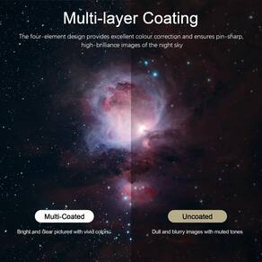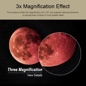 A lente de Barlow 1,25 " 4-element 3 x o poder de qualquer 1,25 " telescópio ocular. É um acessório ideal para alta potência elevada e observação planetária, bem como na Lua e planetária de imagens quando utilizado com um sistema solar a câmara ou câmara. Use este prático magnification-boosting Barlow para corpo a corpo na visão de Mars, de Saturno, e gigantesco planeta, ou para estudo sempre of the Moon em detalhe requintado. O impulso de energia fornecida pelo extra este é especialmente útil quando utilizado com curta distância focal da lente Barlow Telescopes que seria o contrário não ser capaz de alcançar a ampliação desejada com muito curta distância focal de. Os 3 x Barlow possui um design melhorado 4-element lente que preserva a nitidez e contraste do seu telescópio e telescópio de. Os elementos de lente multi-revestido com camada de São totalmente revestimentos, e edge-blackened para proporcionar o máximo de luz de rendimento e melhor contraste da imagem. - Potência de ampliação 3X: lente 3 x de 3 cm quando conectada Astromania qualquer ocular de telescópio de 3 cm; fornecerá uma ampliação três vezes maior que a da ocular; proporcionando um efeito mais claro para astrofotografia - Revestimento múltiplo: lentes de 4 elementos com design óptico multi-revestido tornam a imagem mais nítida e nítida, o que renderá imagens requintadas sem introduzir abberação cromática adicional; enquanto pode manter a reprodução de cores reais mesmo em condições de pouca luz - Compatibilidade universal: lente 3x barlow de 3 elementos Astromania de 3 cm com design de cilindro de 3 cm projetado com precisão; é compatível com a maioria dos telescópios e oculares; o cilindro rosqueado aceita filtros para fotografia de planetas e nebulosas - Estrutura de liga de alumínio: feito de alumínio premium com acabamento anodizado preto; este componente é usinado com precisão usando tecnologia CNC e pode ser utilizado por um longo tempo na maioria dos ambientes - Embalagem protetora premium: este barlow 3x está equipado com uma tampa antipoeira e uma bela caixa; a tampa de poeira meticulosamente projetada pode proteger a lente das partículas de poeira mais íntimas; garantindo um efeito óptico claro e sem falhas para cada observação