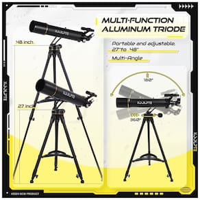 Desempenho Óptico Potente: Com uma abertura de 90 mm e uma distância focal de 700 mm, este telescópio refrator apresenta lentes de vidro óptico totalmente revestidas com revestimento de alta transmissão de luz, oferecendo excelente desempenho óptico e ampliação que varia de 28x a 210x. É um telescópio de alta ampliação para adultos e ideal para iniciantes que desejam observar diversos fenômenos astronômicos.