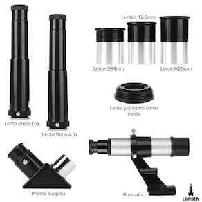 Inclui as lentes SR4mm, H12,5mm, H20mm, lente ereta 1,5x e barlow 3x.
