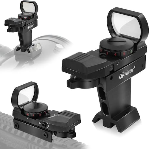 A versátil mira de reflexo de telescópio Finder Deluxe ajudará você a levar o seu telescópio em novas direções! Perfeito para usar durante a noite e durante o dia, a mira Finder Deluxe possui um LED vermelho para mira noturna e um LED verde mais brilhante para mirar em crepúsculo e na maioria das condições de luz do dia. As miras de reflexo são populares graças ao método intuitivo e não ampliado que usam para ajudar você a apontar seu telescópio com precisão. Dependendo da cor LED escolhida, um pequeno LED emite um padrão vermelho ou verde em uma janela de visualização que você olha para mirar o telescópio após um simples procedimento de alinhamento. Uma vez que o padrão é alinhado com o objeto alvo, você está pronto para vê-lo através do telescópio. Muitos astrônomos amadores usam um localizador ampliado e uma visão reflexiva para fornecer opções úteis para apontar seu telescópio com precisão. Com quatro diferentes padrões de retículo iluminados por LED vermelho ou verde para escolher, o EZ Finder Deluxe II torna o seu telescópio mais fácil do que nunca. Cinco níveis de brilho permitem que você adapte a intensidade do retículo às condições de visualização predominantes. Este dispositivo reflexivo para qualquer telescópio tem uma janela de visualização maior do que o Finder, tornando o Finder Deluxe mais fácil de usar, já que projeta o padrão escolhido em uma área mais ampla do céu ou horizonte. Parafusos de ajuste fino vertical e horizontal permitem alinhamento preciso com o telescópio principal. A estrutura toda em metal dá à vista Finder Deluxe Telescope Reflex a precisão e durabilidade exigidas por observadores sérios. A mira inclui um suporte de mira usinado para localizar cauda de andorinha que se encaixa na maioria dos telescópios ou nossas bases de montagem de cauda de andorinha (vendidas separadamente). Uma única bateria de célula de lítio CR2032 (não incluída). - O Finder projeta um pequeno padrão de retículo de LED vermelho ou verde em uma janela de visualização para que você possa mirar facilmente seu telescópio à noite ou durante o dia - O Finder Deluxe é uma mira reflexa sem ampliação que torna a mira do seu telescópio mais fácil e precisa do que nunca, dia ou noite - Inclui suporte localizador de cauda de andorinha que se encaixa na maioria dos telescópios Orion; Requer bateria de célula botão de lítio CR 2032 que não está incluída - Os parafusos de ajuste fino horizontal e vertical permitem o alinhamento preciso da mira reflexa com o telescópio - O Finder Deluxe possui uma grande janela de visualização; quatro padrões de retículo de mira diferentes para escolher; e cinco níveis de brilho