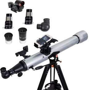 Equipamento de observação completo, o Telescópio inclui uma variedade de acessórios: além do tripé, acompanha também duas oculares que fornecem ampliações altas e baixas, lentes Barlow, que efetivamente dobram a potência de cada ocular e uma diagonal de imagem ereta de 90°.