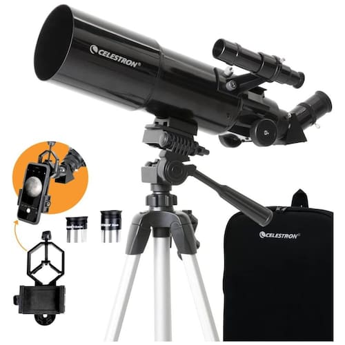 Este telescópio refrator de 80 mm é equipado com óptica de vidro totalmente revestida, garantindo imagens claras e nítidas. A estrutura leve facilita o transporte, e a bolsa personalizada permite armazenar o telescópio e acessórios com conforto.