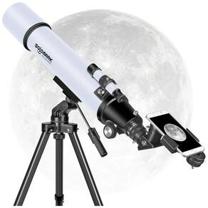 O telescópio SOLOMARK 80900 é equipado com uma abertura de 80 mm e lentes de vidro óptico totalmente revestidas, garantindo imagens brilhantes e claras. A grande abertura captura mais luz, enquanto as lentes de alta transmissão melhoram a passagem de luz e reduzem reflexos, proporcionando vistas detalhadas do céu noturno.