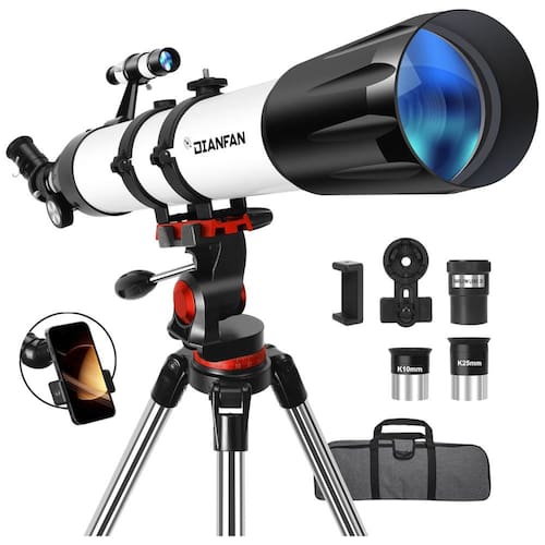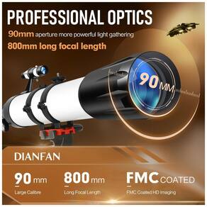 The large 90mm aperture increases the field of vision, providing you with truer color images Powerful MagnificationWith 2 eyepieces and a 3X Barlow lens,this telescope is perfect for Tanto os adultos quanto para iniciantes