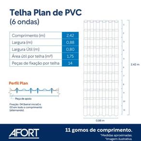 Telha PVC Plan 2,42m x 88cm 6 Ondas Cinza - P3010055 - AFORT