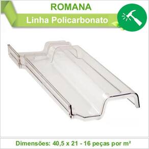 Modelo: Telha Romana Espessura: 2,5 mm Transmissão de luz: até 85% Altura: 4,0 cm Largura: 21 cm Comprimento: 40,5 cm Cobertura: 16 telhas/m2Si Peso: 350 gramas