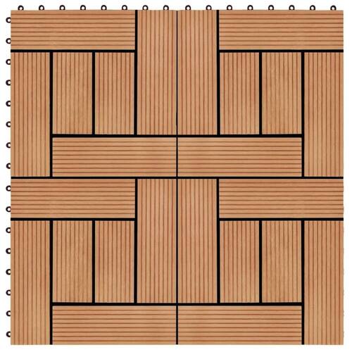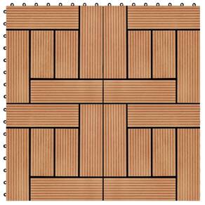 Este conjunto de ladrilhos de deck WPC, com um tamanho de ladrilho individual de 11,8 ? x 11,8 ?, consiste em 11 peças e cobre uma área de superfície total de 10,8 pés². Será perfeito para pátios, varandas, banheiros ou sua piscina ou área de spa