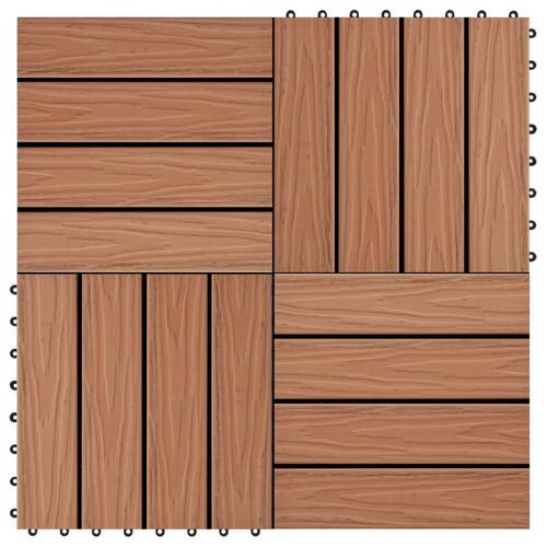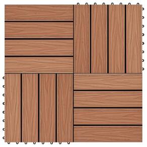 O conjunto de ladrilhos de deck WPC com relevo profundo, com um tamanho de ladrilho individual de 11,8 “x 11,8", consiste em 11 peças e cobre uma área de superfície total de 1 metro quadrado. Isso dará uma aparência limpa ao seu pátio, varanda, banheiro ou piscina ou área de spa.