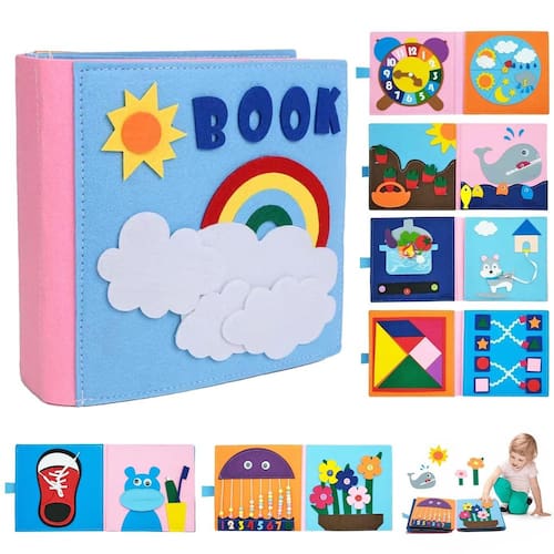 Este é um brinquedo Montessori, um livro silencioso para bebês e um livro sensorial para bebês, projetado para crianças de 1 a 3 anos de idade. É feito de feltro não tóxico de alta qualidade, seguro para crianças. Este livro interativo é um ótimo presente de chá de bebê. As crianças podem usar este livro de pano para aprender enquanto brincam. Este livro ocupado para bebês é um livro sensorial, um livro de pano e um brinquedo educativo. É muito adequado para viagens e casa, e também é uma boa escolha para presentes de aniversário e presentes de Natal. Este livro silencioso para bebês tem muitos designs diferentes, incluindo design de forma 3D, design de veículos, design de animais, design de frutas, etc. É muito adequado para bebês de 1 a 3 anos de idade aprenderem enquanto brincam. Ao mesmo tempo, também pode exercitar as habilidades motoras finas do bebê, habilidades sensoriais, imaginação e outras habilidades cognitivas do bebê. O livro baby quiet tem uma riqueza de conteúdo interessante, e cada página tem designs diferentes. A frente e o verso de cada página são diferentes. Diferentes formas têm diferentes experiências sensoriais. Este livro sensorial para bebês é feito de feltro ecológico. O material macio é confortável e seguro para a pele do bebê. O livro ocupado para bebês usa o design de fecho aderente mais seguro. O livro macio não tem peças pequenas e a costura resistente torna o livro mais durável. - 🎁 Brinquedos MONTESSORI DE ATIVIDADES 16 EM 1: Este livro de tabuleiro ocupado apresenta 16 atividades de aprendizagem e é quase inteiramente feito de feltro. Ao jogar este tabuleiro ocupado, as crianças se concentram em combinar com as formas coloridas de fecho aderente, praticam os zíperes e botões de brinquedo, contando as horas e outros. O livro ocupado pode ajudar as crianças a desenvolver suas habilidades motoras finas. É um brinquedo sensorial durável e resistente. Ótimos brinquedos de aprendizagem pré-escolar para meninos e meninas. - 🎁Aprenda e brinque: Valores divertidos e educativos que este livro ocupado tem. É carregado com uma abundância de oportunidades de aprendizagem cognitiva, bem como algumas oportunidades para o seu filho desenvolver habilidades motoras finas. É muito bom para as crianças aprenderem a amarrar e afivelar, e todas as outras diversão aprendendo este livro fornece. Pacote educacional bem detalhado com diferentes atividades e experiências de aprendizagem emocionantes. - 🎁 Essenciais de viagem para crianças: Este livro silencioso rapidamente se tornará um companheiro de viagem para seus filhos de 1 a 3 e 2 a 4 anos. Todos esses recursos são embalados em um livro de feltro leve, o que torna o brinquedo fácil de embalar e transportar para qualquer lugar que estamos indo. Todo o conjunto é portátil e ótimo para atividades de carro ou viagens de avião. Também é perfeito para momentos tranquilos como consultas médicas ou dentistas ou igreja. - 🎁PRESENTE PERFEITO PARA CRIANÇAS: O rapaz gosta das cores brilhantes e de vários itens para explorar e brincar. E eles adoram descobrir as peças e onde colocá-las. O adorável livro de atividades é ótimo para crianças pré-escolares curiosas e alunos iniciantes. Ajuda a manter os dedinhos ocupados! É definitivamente bom e valorizável. Guia de presente de Natal para Natal, meias e presentes de aniversário, etc. - 🎁Brinquedo de aprendizagem seguro e resistente: construído usando materiais de feltro macio, nosso quadro de atividades para crianças prioriza a segurança com design não tóxico e ecológico, sem bordas e componentes firmemente presos. Cheia de compromissos cativantes para as crianças explorarem, esta criação promete o prazer do aprendizado sensorial. O brinquedo sensorial Montessori da Cobelae também reforça a confiança e a autoestima das crianças através da resolução de problemas divertida.