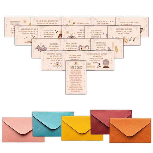 Adicione um pouco de magia à sua festa temática de feiticeiro com este conjunto de cartas de pistas de caça ao tesouro! É uma maneira de baixo desconforto de criar memórias especiais de festa de aniversário, que também é uma ótima maneira de aumentar a emoção de revelar presentes de aniversário ou caça ao tesouro. Este divertido jogo de caça ao tesouro é uma atividade emocionante para qualquer festa temática mágica. - ?Quantidade?Total de 17 cartões e 16 envelopes. 1 manual do utilizador (sem garantia de versão em português). - ?Divertido de brincar?Aventura cheia de ação e risadas para toda a família ou amigos. Estas cartas de caça ao tesouro fazem com que as crianças ou amantes encontrem os enigmas e deixem algumas guloseimas ao redor da casa/jardim ou um grande presente na última pista. Encha a caixa como tesouro com presentes para ajudar as crianças ou amantes a passarem uma atividade inesquecível de festa de aniversário de feiticeiro. - ?Ótimos designs?Os cartões de pista têm os seguintes esconderijos: flores, caixa de ferramentas, churrasqueira, lata de lixo, galpão, caixa de correio, carro, roda e assim por diante. Se estes forem adequados às suas necessidades, então vá em frente, monte a caça ao tesouro e divirta-se, você terá um ótimo tempo tentando resolvê-los! - ?Perfeito para?Adicione um pouco de magia à sua festa temática de bruxo com este conjunto de cartas de pistas de caça ao tesouro! É uma maneira de baixo desconforto de criar memórias especiais de festa de aniversário, que também é uma ótima maneira de aumentar a emoção de revelar presentes de aniversário ou caça ao tesouro. Este divertido jogo de caça ao tesouro é uma atividade emocionante para qualquer festa temática mágica. - Existem 16 pistas de caça ao tesouro para você escolher, e todas elas incluem enigmas divertidos para você resolver. Esta é uma maneira super incrível de se divertir com seus filhos mais velhos, pois eles têm que decifrar os códigos secretos antes de encontrarem a próxima pista. Este jogo é apropriado para uma ampla faixa etária de pessoas, o que é adequado para 5 anos a 99 anos.