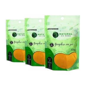 Gengibre em Pó - Embalagem: 50g - Ingredientes: Gengibre raiz - Informações: O gengibre é uma raiz comestível que, quando adicionada na dieta, pode trazer vários benefícios para a saúde, desde ajudar a até tratar má digestão, azia, enjoo, gastrite, resfriados, alto, pressão alta, tosse e problemas de circulação sanguínea. O gengibre é uma raiz conhecida no mundo todo, utilizado como tempero, no preparo de chás, de medicamentos e até mesmo cosméticos. - Como consumir: Pode ser utilizado como tempero para carnes, aves, sopas, caldos, em água, sucos, vitaminas, shakes e muito mais. - Modo de armazenamento: Armazene em um local fresco, seco e arejado, abrigado de fontes de calor e luz direta. Após abertos, devem ser consumidos até a data de validade indicada na embalagem. - Alérgenos: Não contém glúten. Pode conter soja.