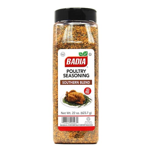 Poultry seasoning tempero para aves O segredo da avó, agora à sua disposição. Um mix delicado e equilibrado, pensado para deixar o frango dourado, suculento e memorável. Mas vai além: funciona como charme em peixes, saladas e vegetais também. Ingredientes: Alho e cebola desidratados em pó, sal, especiarias, páprica, antiumectante fosfato tricálcico Use com: Frango, peru, legumes, sopas, arroz Certificações: Kosher halal msg free Marca: Não Informado