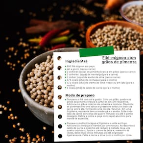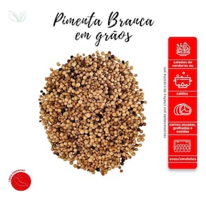 Pimenta Branca em Grãos - Embalagem: 50g - Ingredientes: Pimenta Branca em Grãos - Informações: A especiaria preta é colhida antes de amadurecer, seca em película, que lhe garante mais picância, ardência e, em princípio, mais qualidades. As brancas esperam mais um pouquinho até amadurecer completamente, passam por um processo, tem a casca removida, secas no sol e resultam numa pimenta branca com sabor, mais suave. O legal é que o Brasil é um dos maiores produtores e exportadores desta maravilhosa especiaria. O uso de pimentas-do-reino brancas tem algumas diferenças de suas co-irmãs preta, verde ou rosa. Pequenas diferenças que é importante conhecer. No quesito culinária, a pimenta-do-reino branca é a preferida por questões até estéticas em pratos como sopas, purês de batata, peixes, frangos, carne de porco, suflês e molhos. Os valores medicinais positivos da pimenta-do-reino branca vêm do seu uso em larga escala na Ayurveda, terapias antigas e chinesas. Onde era indicada e Utilizado para o tratamento de artrite, dor nas articulações, intoxicação alimentar, náuseas, congestão nasal. Trazida da Ásia equatorial pelos mercadores muçulmanos na época das Grandes Navegações, a pimenta-do-reino se espalhou pelo mundo. Hoje o Brasil é um dos maiores produtores e exportadores do tempero. E uma curiosidade: as pimentas preta e branca vêm da mesma semente A diferença está apenas na secagem. A planta é consumida seca, em grãos ou moída. Pode-se acrescentar na receita antes do cozimento e nas marinadas. - Como consumir: A Pimenta Branca é um dos condimentos mais apreciados no mundo e vai bem com quase tudo. Ela agrega sabor a todo tipo de carne grelhada, cozida ou assada. Pode ser Utilizado em saladas de verduras e legumes, sopas, ovos, omeletes e suflês. Funciona bem inteira em ensopados e caldos, e moída grosseiramente para steak au poivre. - Modo de armazenamento: Armazene em um local fresco, seco e arejado, abrigado de fontes de calor e luz direta. Após abertos, devem ser consumidos até a data de validade indicada na embalagem. - Alérgenos: Não contém glúten. Pode conter derivados de soja.