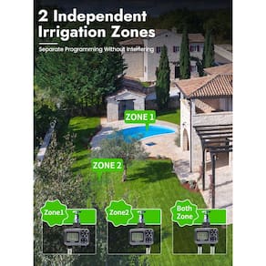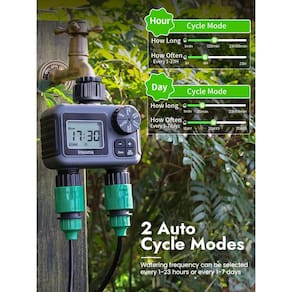 - ?3 modos de irrigação manuais? Os 3 modos manuais independentes do nosso temporizador de irrigação externa são incrivelmente úteis. Com o botão "Zona", alterne entre Zona 1, Zona 2 ou ambas as Zonas. O modo de irrigação manual permite que você regue temporariamente sem atrapalhar sua programação predefinida. Você pode definir o tempo de irrigação manual de 1 a 59 minutos de acordo com suas necessidades. Esta flexibilidade é ótima para aqueles pontos secos inesperados ou quando você só quer dar um pouco mais de água para uma área específica. Dá a você controle completo sobre sua rega, esteja você lidando com uma nova planta ou um gramado irregular.