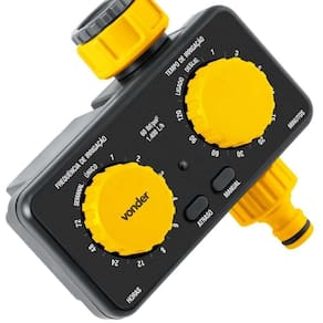 Indicado para programar o tempo e a frequência da irrigação, sendo ligado diretamente na rede de água.