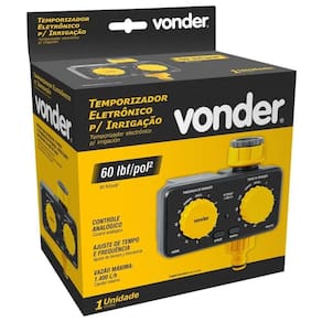 Transforme a maneira como você cuida do seu jardim com o Temporizador Eletrônico para Irrigação Vonder. Este dispositivo prático e eficiente permite que você programe o tempo e a frequência de irrigação, garantindo que suas plantas recebam a quantidade certa de Água, economizando tempo e recursos. Com um design robusto em plástico resistente, ele é ideal para quem busca automatizar a irrigação de jardins, hortas e gramados, proporcionando mais saúde e vitalidade às suas plantas. A Vonder é uma marca reconhecida pela qualidade e durabilidade de seus produtos, e este temporizador não é exceção. Ele é alimentado por duas pilhas AA (não inclusas) e possui um tempo máximo de operação de 120 minutos, com pressão máxima de 60 lbf/pol. A instalação é simples, com conexão de entrada por rosca de 1 e bucha de redução de 3/4, e saída de engate rápido de 1/2. Além disso, o temporizador é compatível com diversos sistemas de irrigação, tornando-se uma solução versátil para diferentes necessidades.