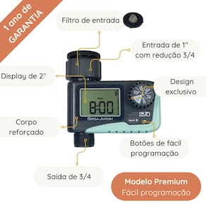 - Praticidade na irrigação programada: Mantém as plantas hidratadas sem a necessidade de regar manualmente.