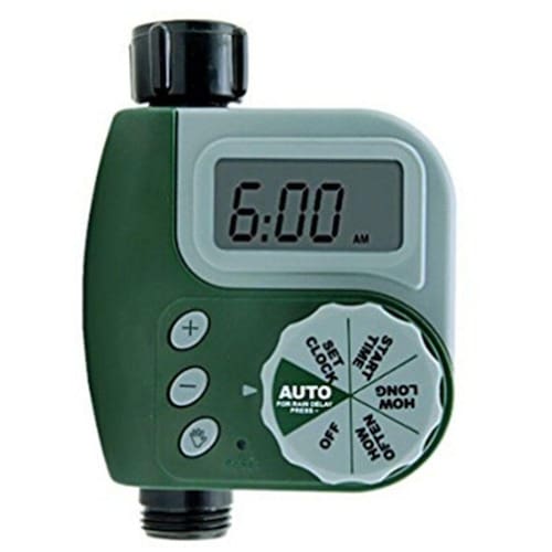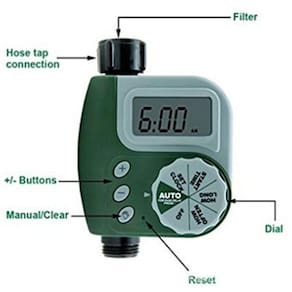 Atraso da chuva para conservação da água Construção resistente às intempéries Tempo de execução de 1 a 300 minutos (6 horas) Intervalos de cada 6 horas a uma vez a cada 7 dias Interruptor de substituição manual para manter o cronograma e permitir a rega manual flexívelO it Single-Dial Water Timer transformará sua torneira da mangueira em um sistema de aspersão programado em minutos. Não há mais plantas mortas porque você esqueceu de regá-las. Chega de grama encharcada porque você esqueceu de desligar a água. Basta definir o temporizador e ir! Com um grande display digital, mostrador de grandes dimensões e controles simples, a programação é rápida e fácil. Construído com materiais de alta qualidade e construção resistente à água, você pode contar com muitos anos de serviço confiável. Um mostrador permite a funcionalidade de controle de temporizador completo. Facilmente ciclos a partir do relógio ajustado, definir o tempo de rega, com que frequência, por quanto tempo, em seguida, executar o programa. Um atraso de chuva é incorporado à função de programação de execução. Um botão manual permite a interrupção do programa. Economiza água em condições secas.