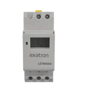 O Timer Digital de Trilho Exatron controla cargas ligando e desligando-as conforme programação (horas, minutos e segundos).